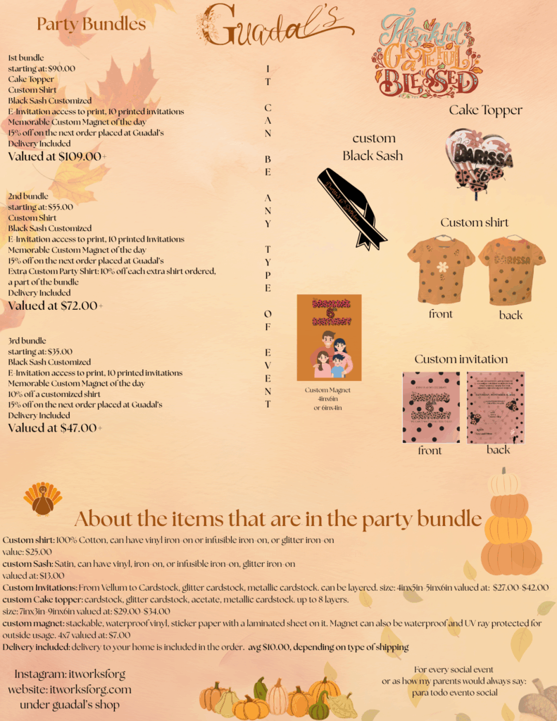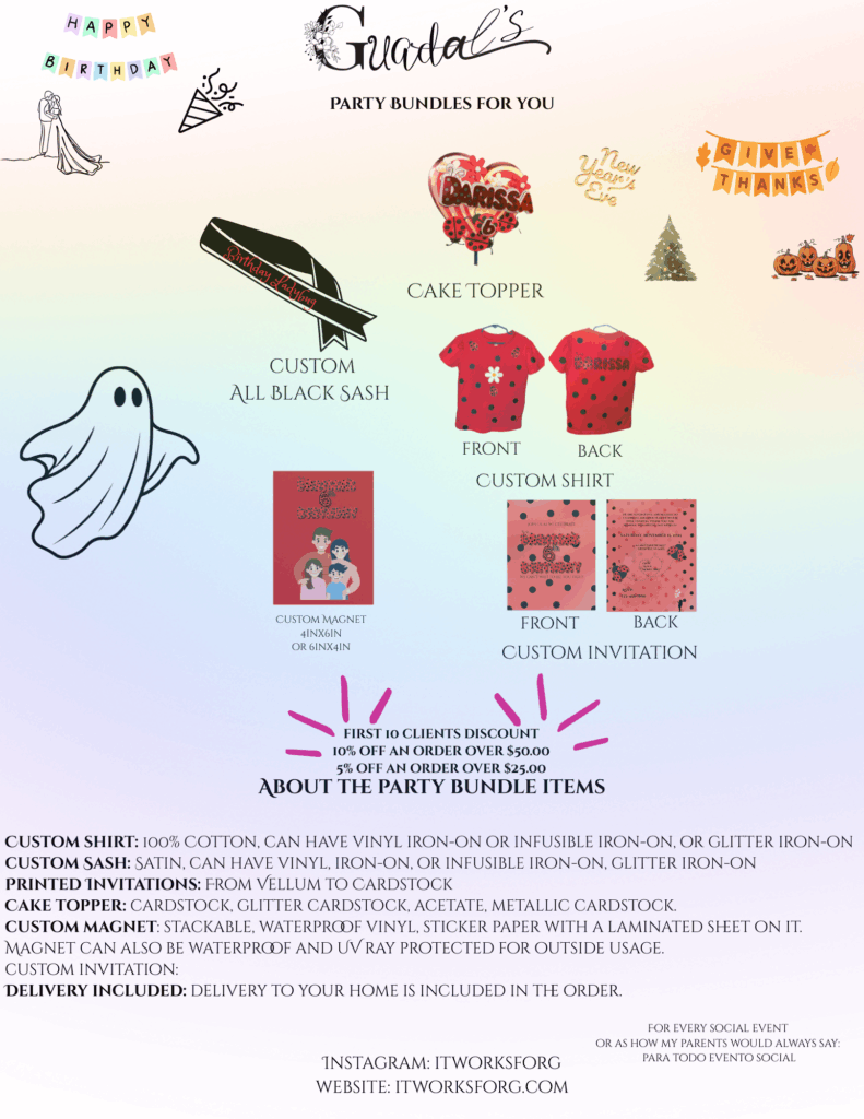 - Extra Custom Party Shirt: 10% off each extra shirt ordered, a part of the bundle